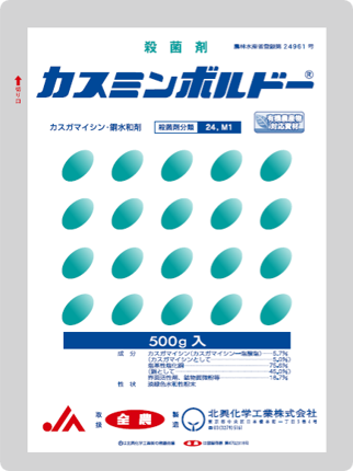 • 細菌性病害に卓効を示すカスガマイシンと、古くから病害防除に使用されている汎用性殺菌剤である銅剤(ドイツボルドーA)とを混合した薬剤。